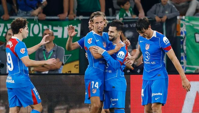 西甲第10轮迎来一场比赛,马竞做客挑战皇家贝蒂斯。本场比赛马竞排出了433阵型。尼古拉斯-冈萨雷斯、阿尔瓦雷斯和小西蒙尼搭档进攻三叉戟。巴埃纳、科克和巴里奥斯组成3中场。汉茨科、希门尼斯、勒诺尔芒和马科斯-略伦特4后卫首发出战。奥布拉克担任首发门将。格列兹曼、瑟洛特和加拉格尔坐在替补席待命。