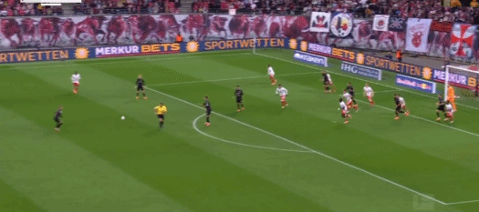 第90+2分钟,努贝尔超级低级失误送礼,罗慕洛破门,莱比锡3-1斯图加特