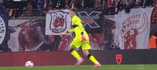 第81分钟,莱比锡队威胁头球,努贝尔献精彩扑救